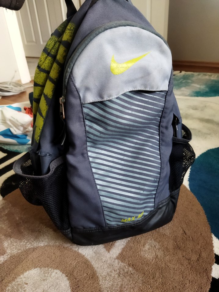 Bu gri Nike çocuk okul çantasında çoklu bölmeler ve yan file cepler bulunur. Sarı Nike logosu ile sportif tasarıma sahiptir. fotoğraflarda kusurlar mevcut