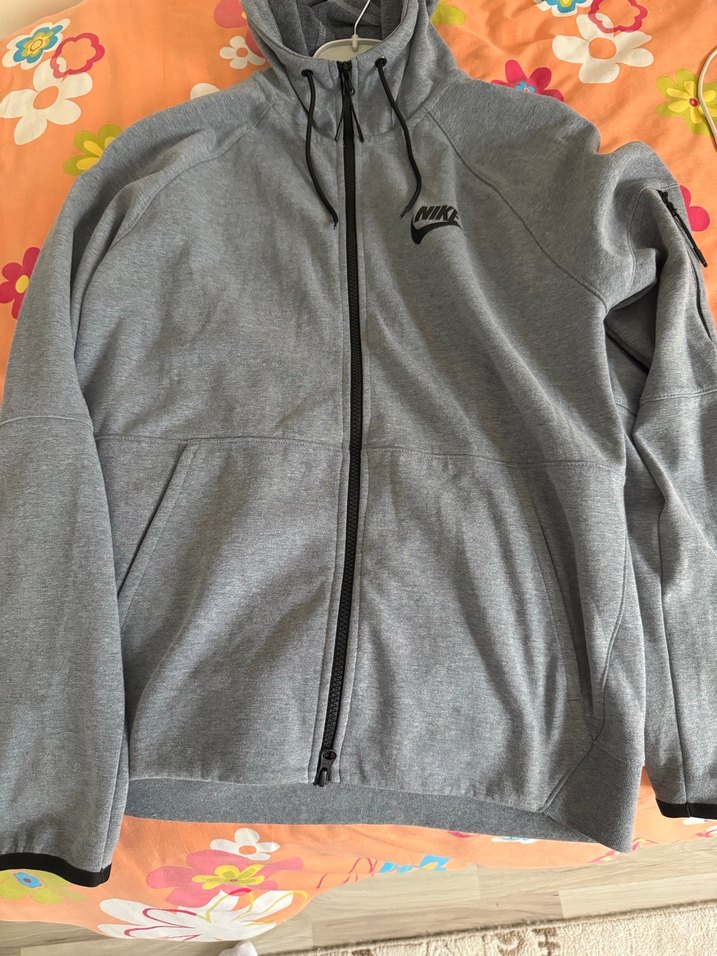 Gri renkte Nike fermuarlı erkek sweatshirt, uzun kollu ve fitted kesimdir. Yumuşak fleece kumaştan yapılmıştır, günlük sokak stili için uygundur.