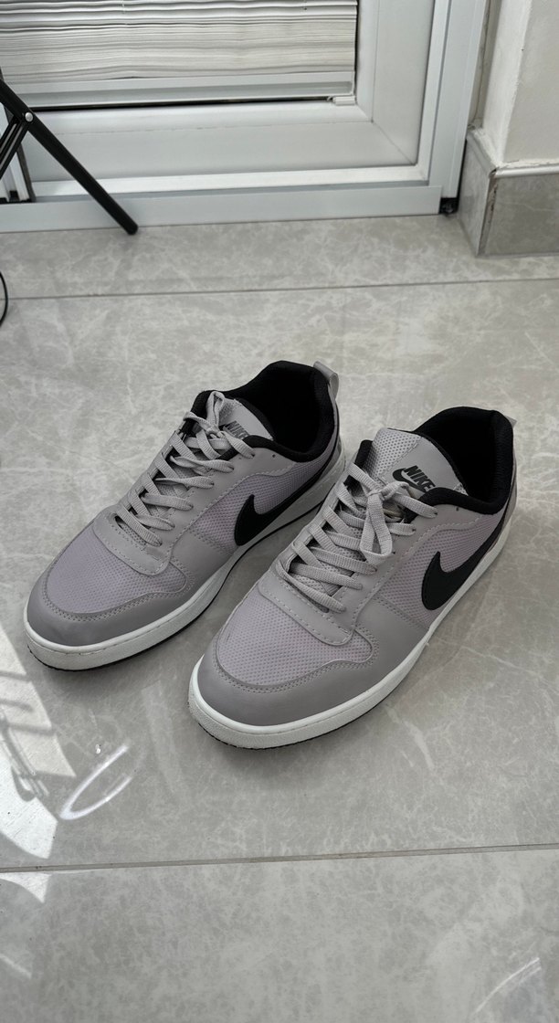 İç taban uzunluğu 27.5 cm 1 ,2 kez giyildi Gri Nike spor ayakkabısı, kauçuk tabanlı ve rahat yapısıyla spor ve günlük sokak tarzına uygundur.