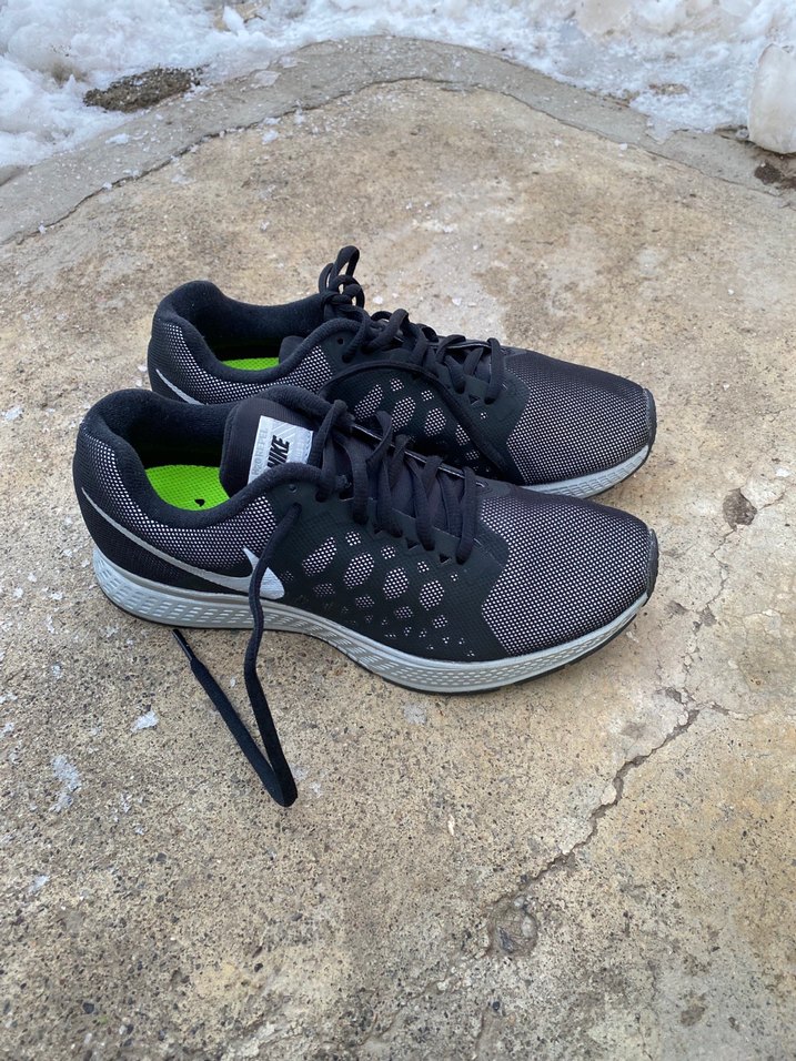 Gri Nike kadın spor ayakkabısı, düz tabanlı ve nefes alabilir yapıda olup sportif ve günlük sokak stili için uygundur. Bağcıklı kapanışa sahiptir.