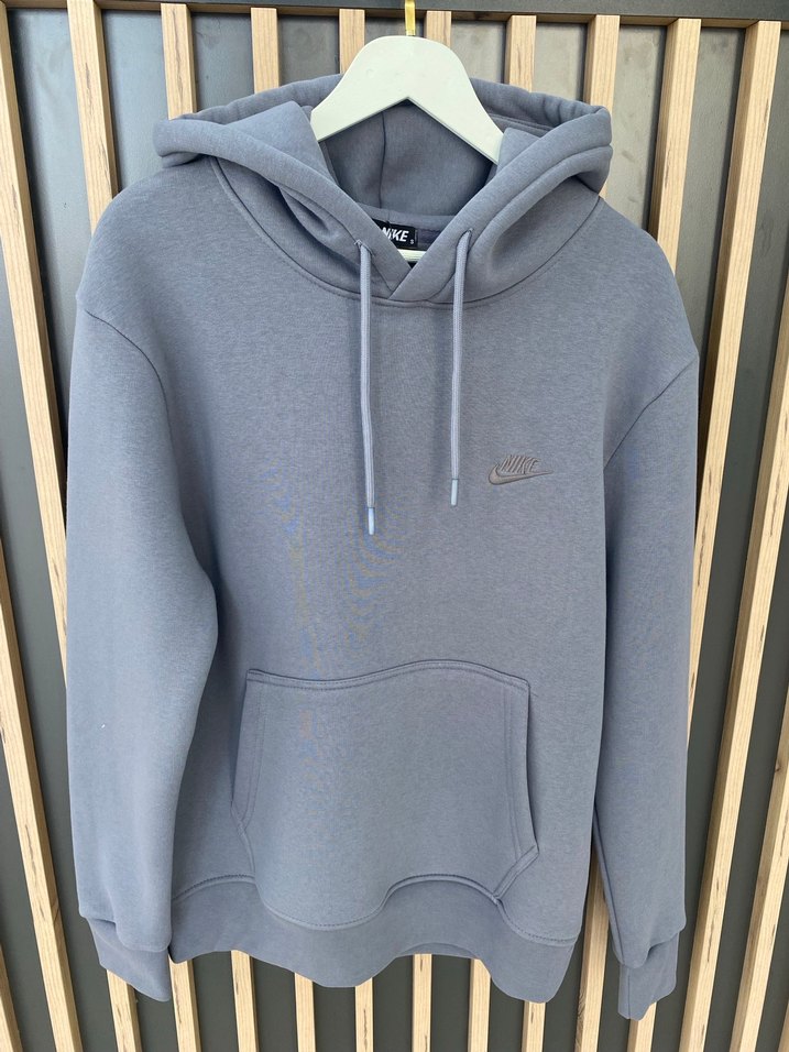 Gri renkte Nike kapüşonlu erkek sweatshirt, rahat kesim ve uzun kolludur. Yumuşak kumaştan üretilmiş, önü cepli ve günlük sokak stili için uygundur.