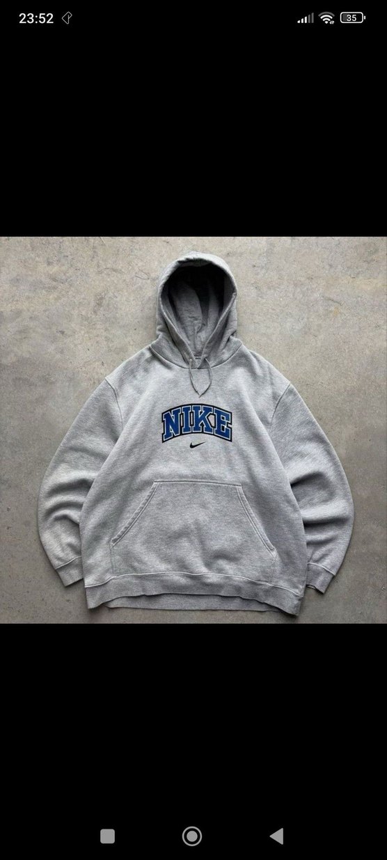 Nakışlı Nike logosu, uzun kollu ve yumuşak kumaşlı gri kapüşonlu bol kesim sweatshirt. Spor ve günlük kullanım için uygundur.