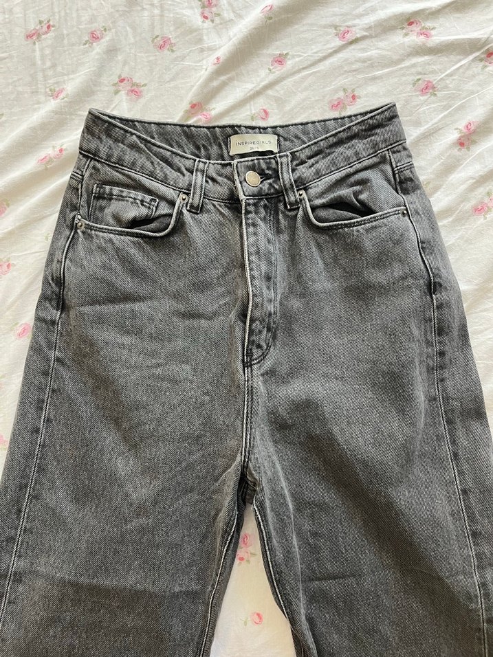 Gri Normal Boy Düğmeli Kadın Kot Pantolon