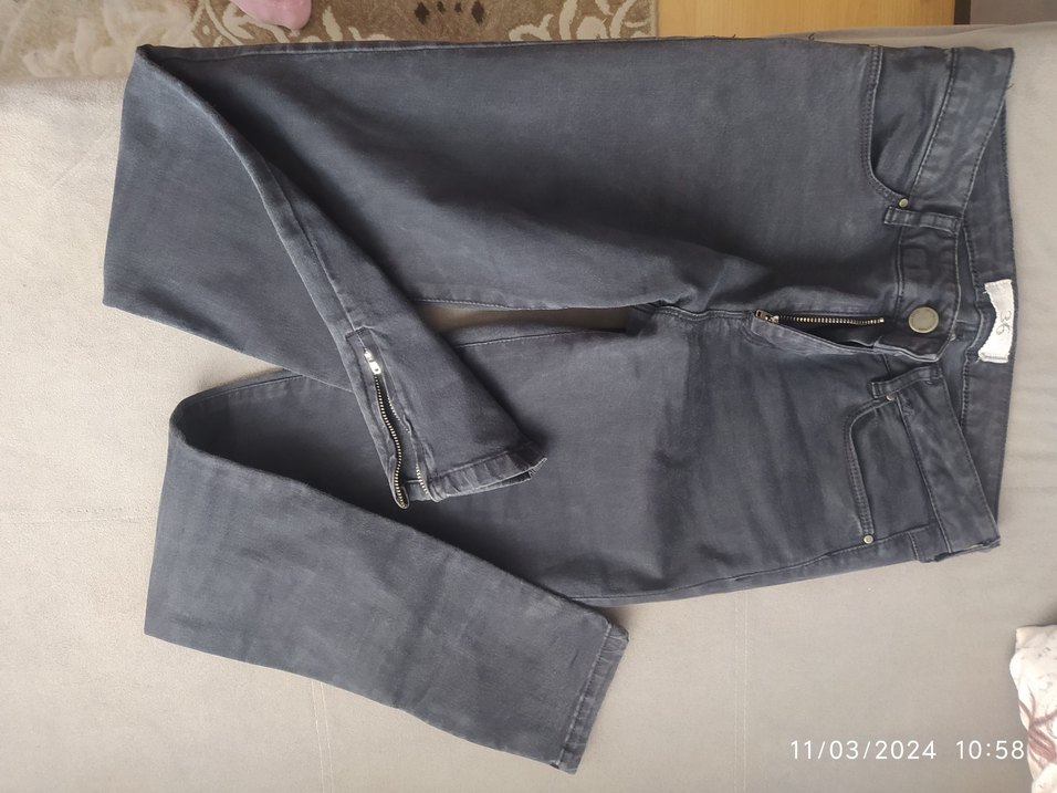 Gri kot kumaştan, normal boy ve regular fit kadın pantolon. Fermuar detaylarıyla trend casual tarzı yansıtıyor. Günlük kullanıma uygun.