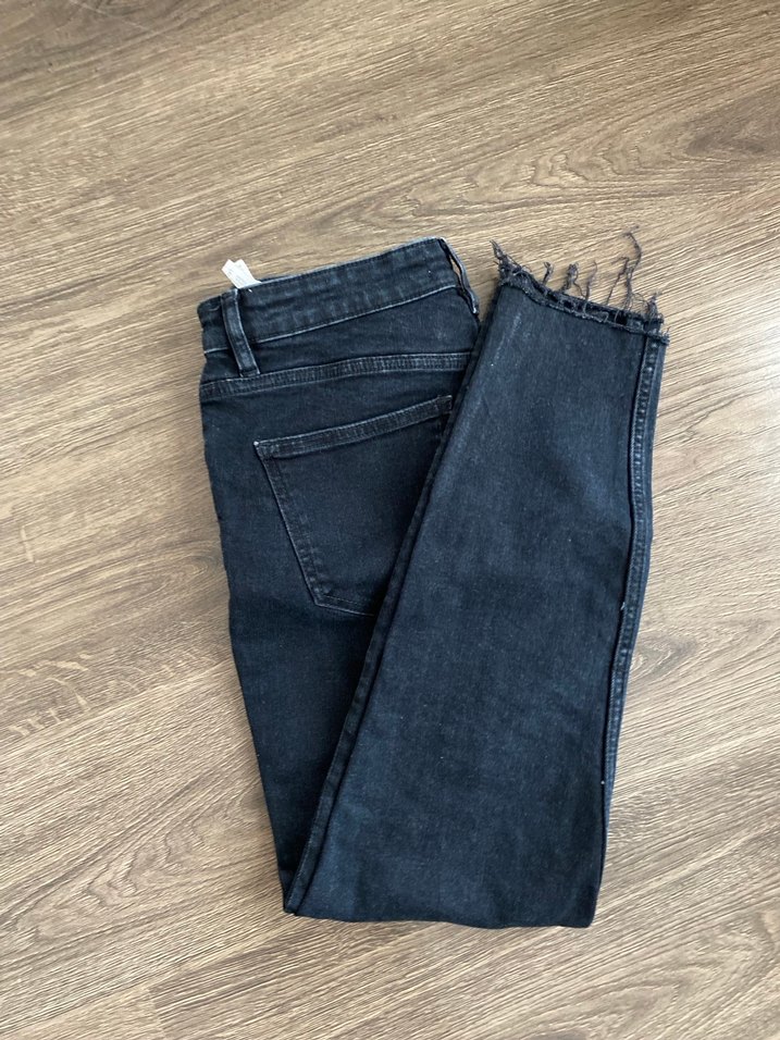 Gri renkli, normal boyda, fermuarlı ve paça uçları kesik fitilli kadın denim jean. Günlük kullanıma uygundur.