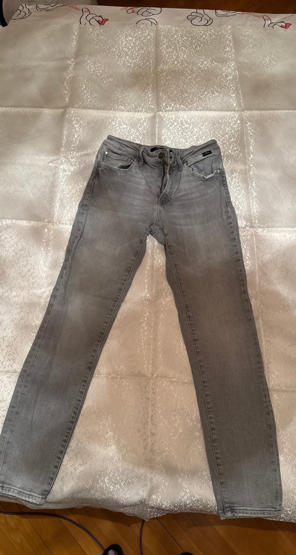 Gri renkte, normal boyda ve düzenli kesime sahip denim pantolon. Desensiz ve gündelik kullanıma uygun, rahat ve şık görünümlü.