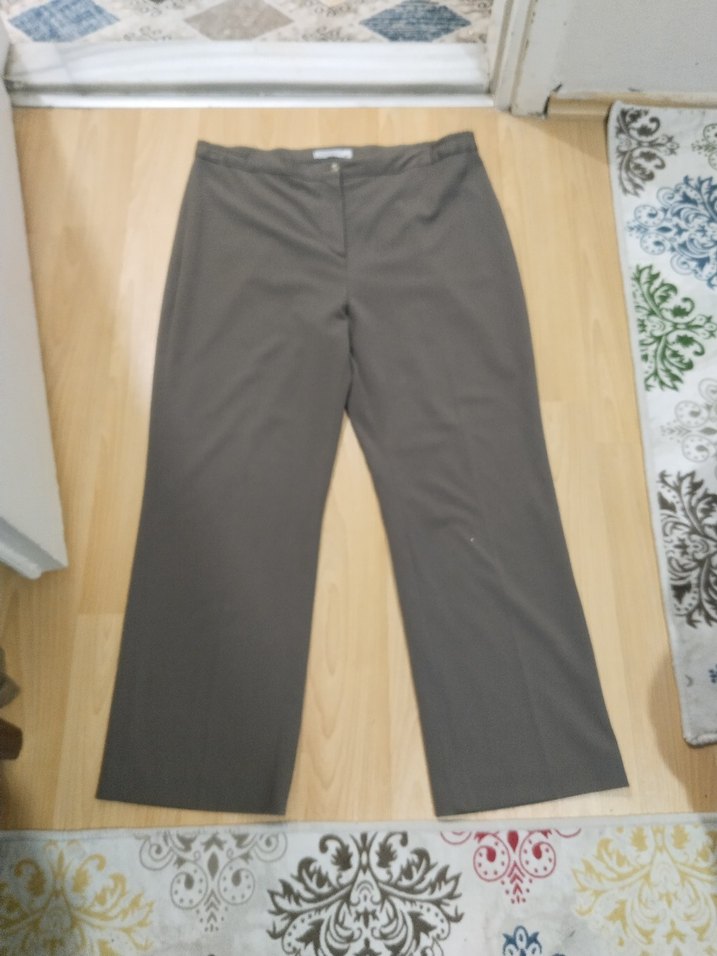 Gri midi boy, düz kesim kadın pantolonu, yumuşak sentetik kumaştan üretilmiştir. Ofis için uygun, desensiz ve sade tasarıma sahiptir.