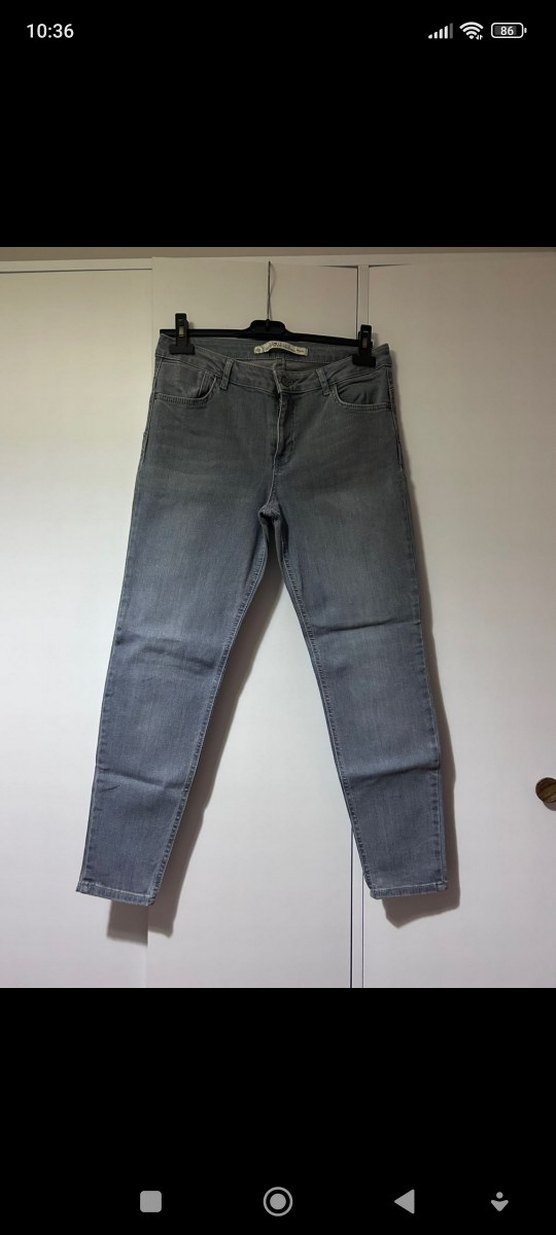 Gri renkte, normal boy ve rahat kesime sahip kadın kot pantolon. Günlük kullanım için uygun, zahmetsiz şıklık sunar.