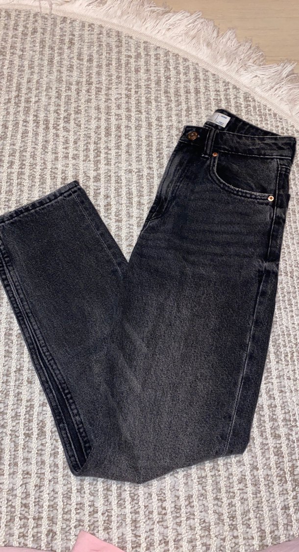 Gri renkte, normal kesim ve midi boyda, tokalı detaylı denim kadın jean, günlük rahat kullanım için uygundur.