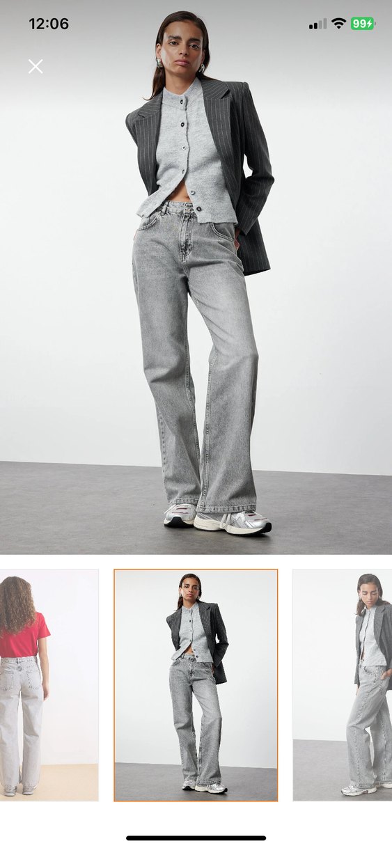 Gri Normal Kesim Midi Denim Kadın Pantolon