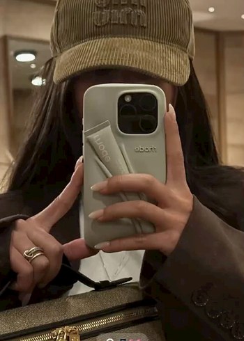 Fur detaylı, gri renkte normcore tarzı telefon kılıfı. Üzerinde 'rhode' markası bulunur. 15 pro max