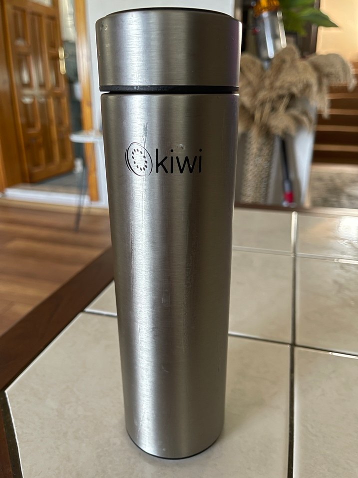 Gri Okiwi termosu, içecekleri sıcak tutar. Dayanıklı paslanmaz çelikten yapılmış ve güvenli kapağa sahiptir. ️6-8 saat sıcak soğuk tutar. Üstteki sıcaklık derecesi gösterir.