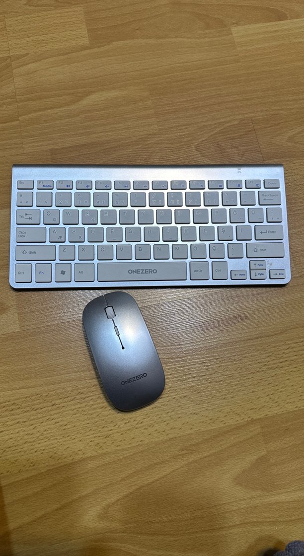 Gri renkli ONEZERO klavye ve mouse seti, kompakt ve şık tasarımı ile verimli kullanım sağlar. Düşük profilli tuşlar ve ergonomik mouse ile masaüstü için ideal. ️