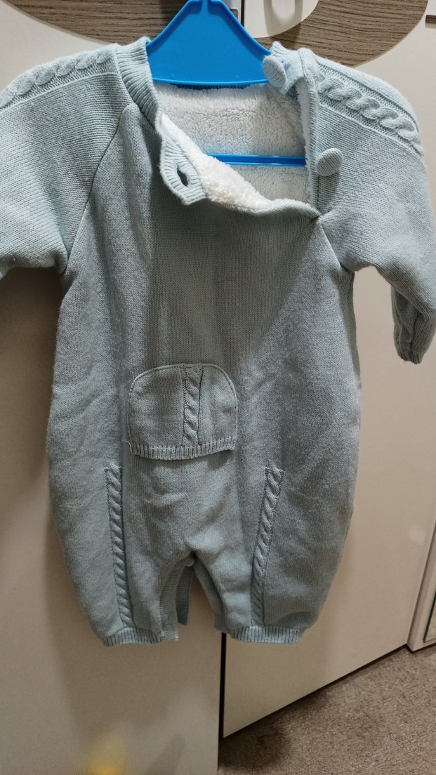 Gri renkli, örgü dokulu bebek tulumu, yumuşak ve sıcak fleece astara sahiptir. Önünde cep detayı bulunan sade ve desensiz bir tasarımdır. sıfırdır hiç kullanılmadı 6 aylıktan itibaren kullanılır tombik bebekse 3 aylıktan itibaren kullanabilirsiniz