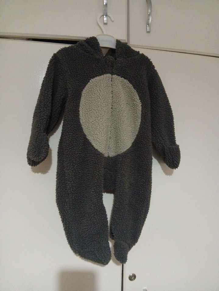 Gri örgü bebek tulumu, yumuşak ve sıcak kumaş, kapüşonlu az kullanıldı Sade, normcore tarzda tasarlanmıştır. ❄️