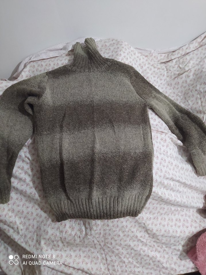 Gri renkli, boğazlı ve uzun kollu örgü kadın kazak. Rahat kesimi ve desensiz yapısıyla günlük kullanıma uygundur.