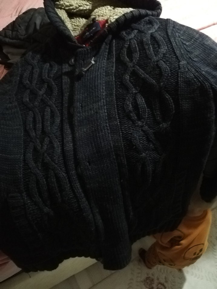 Gri renkte, örgü kumaştan yapılmış, boğazlı ve uzun kollu, bol kesim bir triko kazak. Goth tarzında, sade ve rahat bir modeldir.
