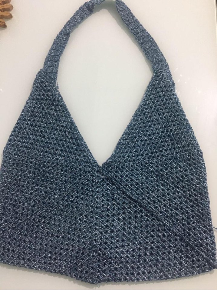 Gri renkli, örgü malzemeden yapılmış bohem tarzda kadın çantası. Minimalist ve desensiz görünümüyle günlük kullanıma uygundur.