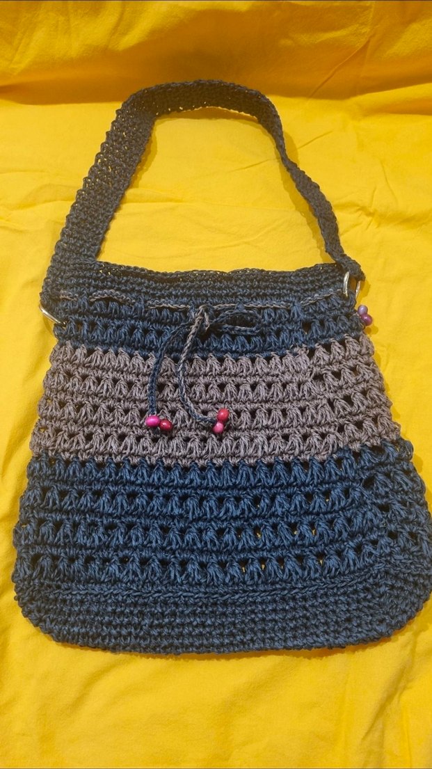 Gri renkli, örgü dokulu bohem kadın çantasıdır. Boncuklu ip detaylı kapama ve yumuşak örme kumaş ile günlük kullanıma uygundur.