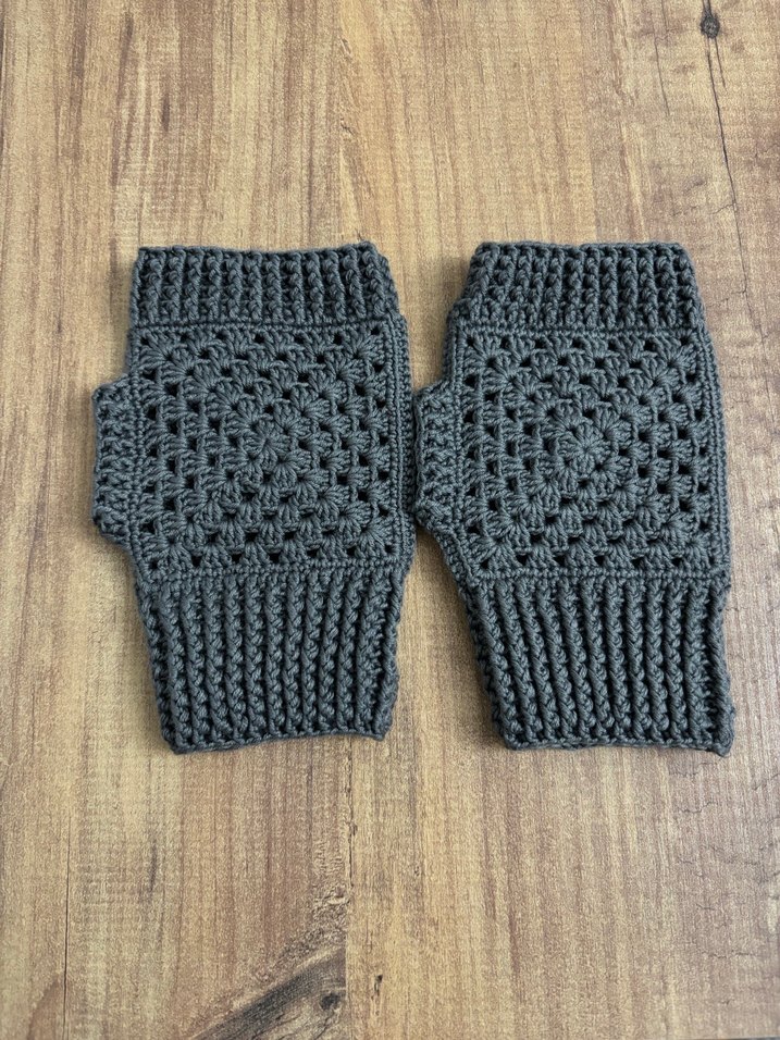 Gri renk örgü bohem tarz kadın eldiveni, açık parmaklı ve rahat bir görünüme sahip. Koton iplerle yapılmıştır.