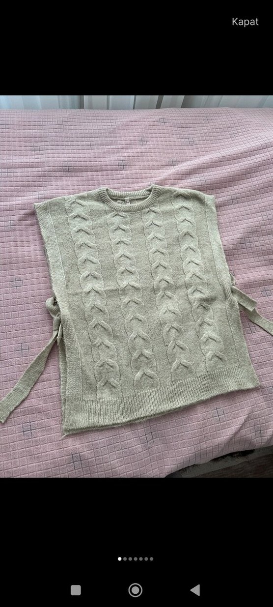Gri renkli, örgü kadın süveter, yuvarlak yaka ve kolsuz tasarıma sahiptir. Rahat bohem tarzıyla günlük kullanıma uygundur. Yanlardan bağcık detayı ve midi boy ile konfor sunar. dolabımda siyah pantolonla harika bi kombin olur