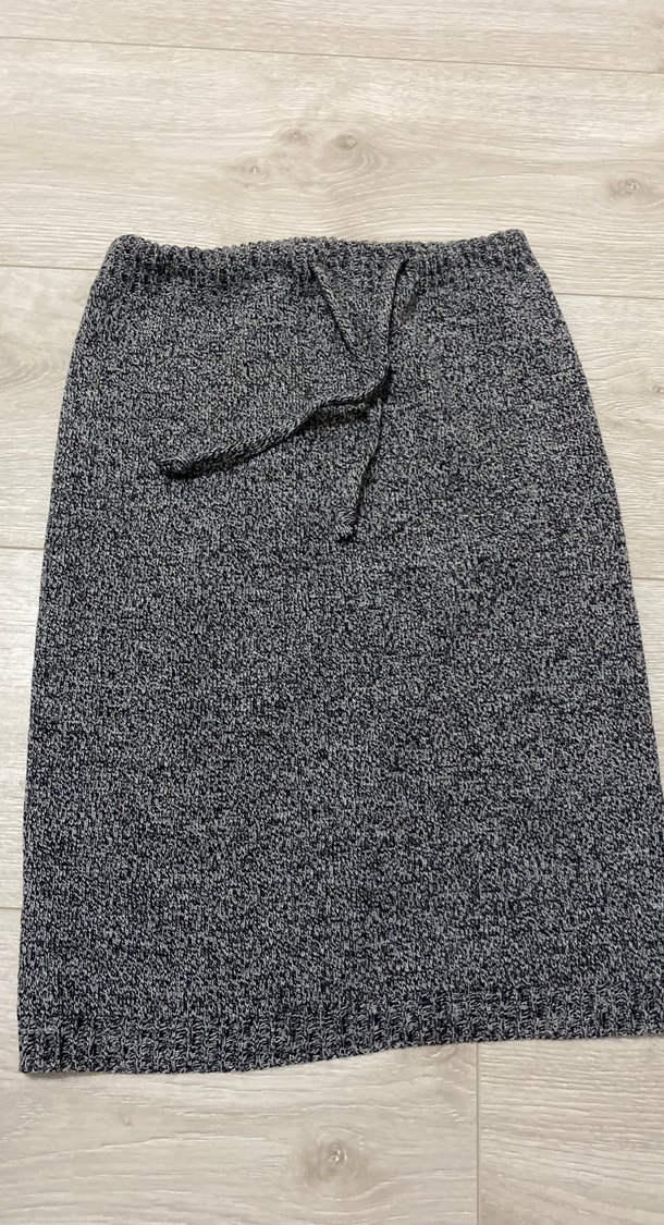 Gri renk, örgü dokulu ve uzun kesime sahip, yumuşak kumaştan yapılmış, hamileler için uyumlu etek. Rahat ve sade tasarımla dış mekan kullanımı için uygun.
