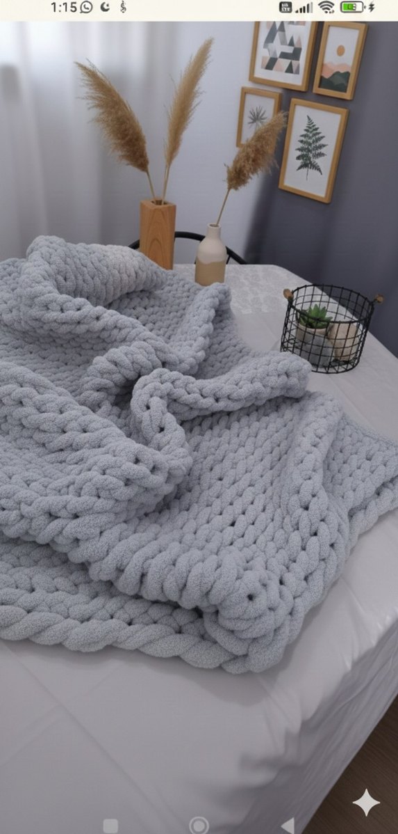 Desensiz, kalın örgü dokusuyla gri çocuk battaniyesi, yumuşak ve sıcak tutar.