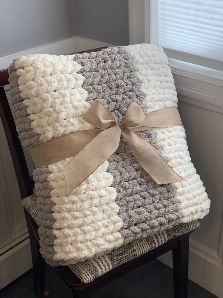 Gri renkli, yumuşak dokulu örgü çocuk battaniyesi. Sıcak tutar ve nötr renkleriyle her ortama uyum sağlar.