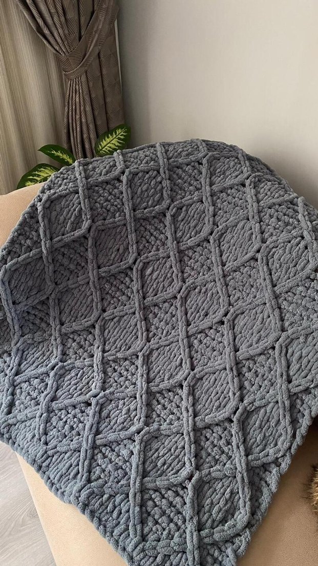 Yumuşak dokulu, gri renkli örgü çocuk battaniyesidir. Çocuklar için sıcaklık ve konfor sağlar.