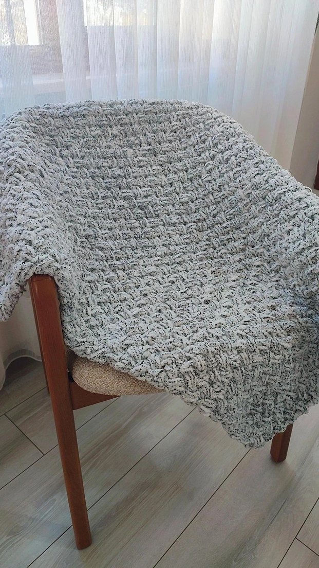 Yumuşak gri örgüden yapılmış, desensiz çocuk battaniyesi, konfor ve sıcaklık için ideal.