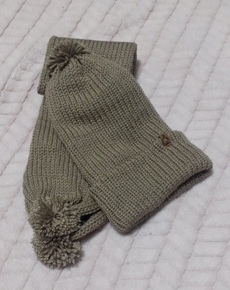 Gri Örgü Çocuk Bere ve Atkı Seti