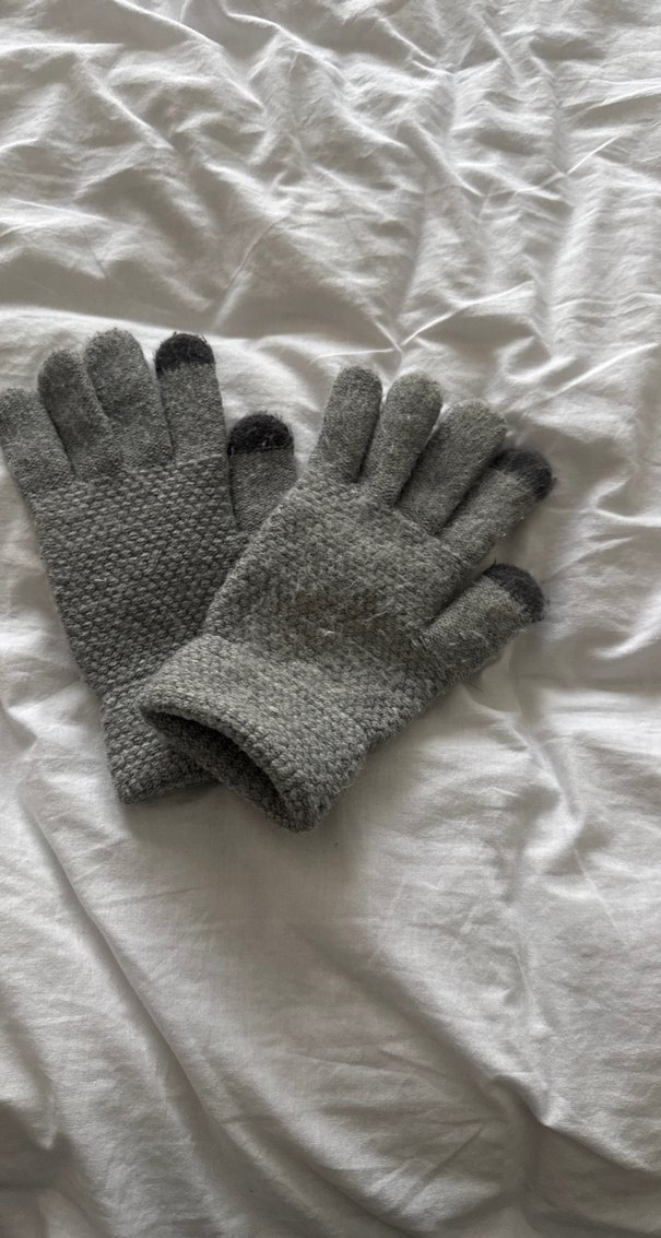 Gri örgü çoçuk eldivenleri, rahat ve kullanışlıdır.7-8 yaşa uygun
