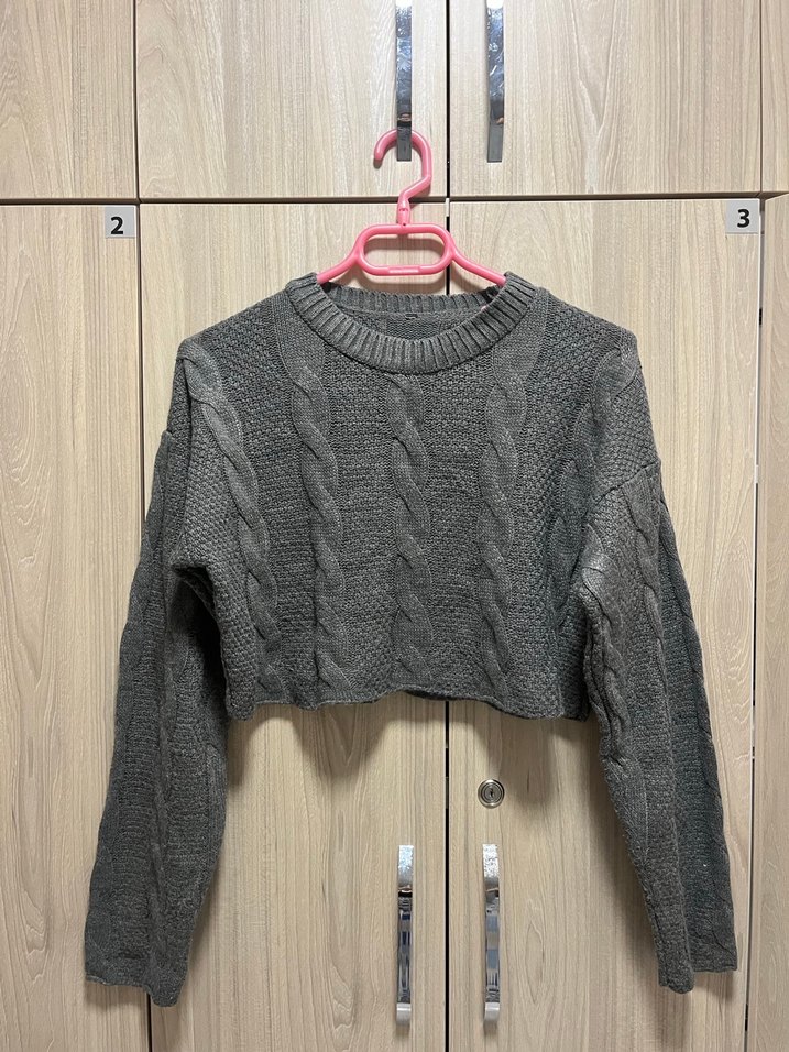 Gri Örgü Crop Kazak