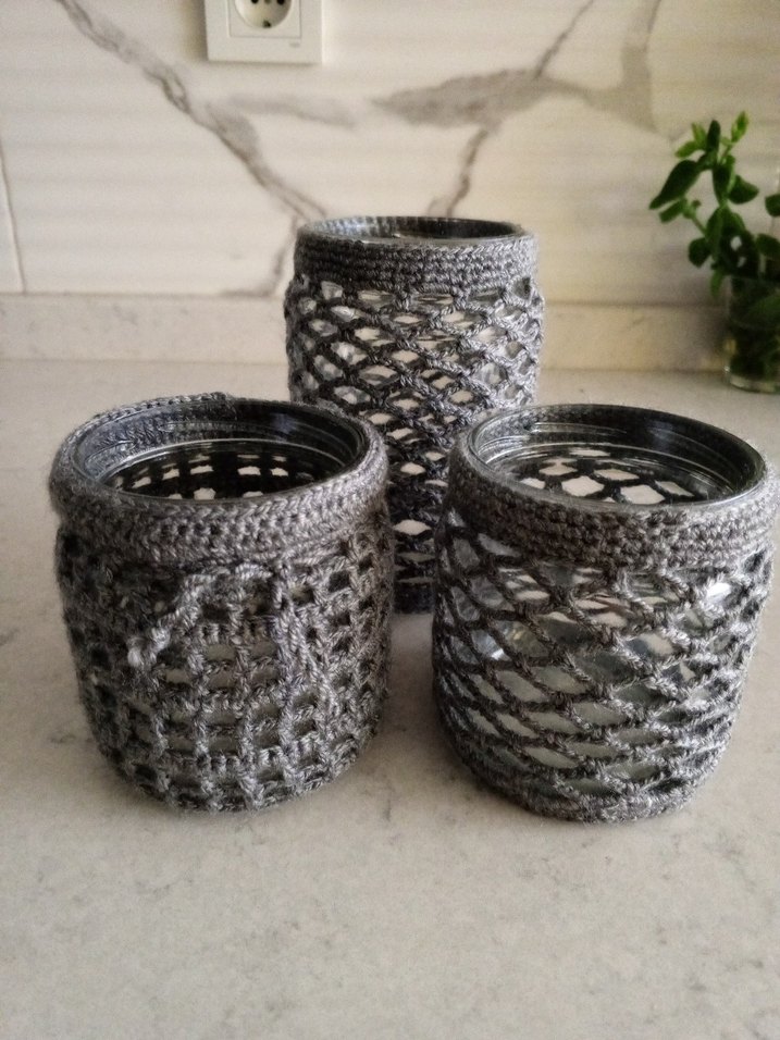 Gri Örgü Desenli Mumluk Seti
