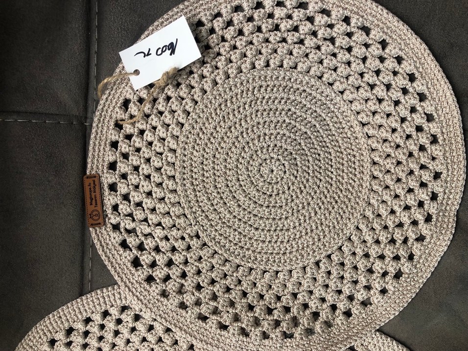 Gri renkli, el örgüsü dokusuna sahip dairesel tasarımlı supla 8 adet tanesi 200