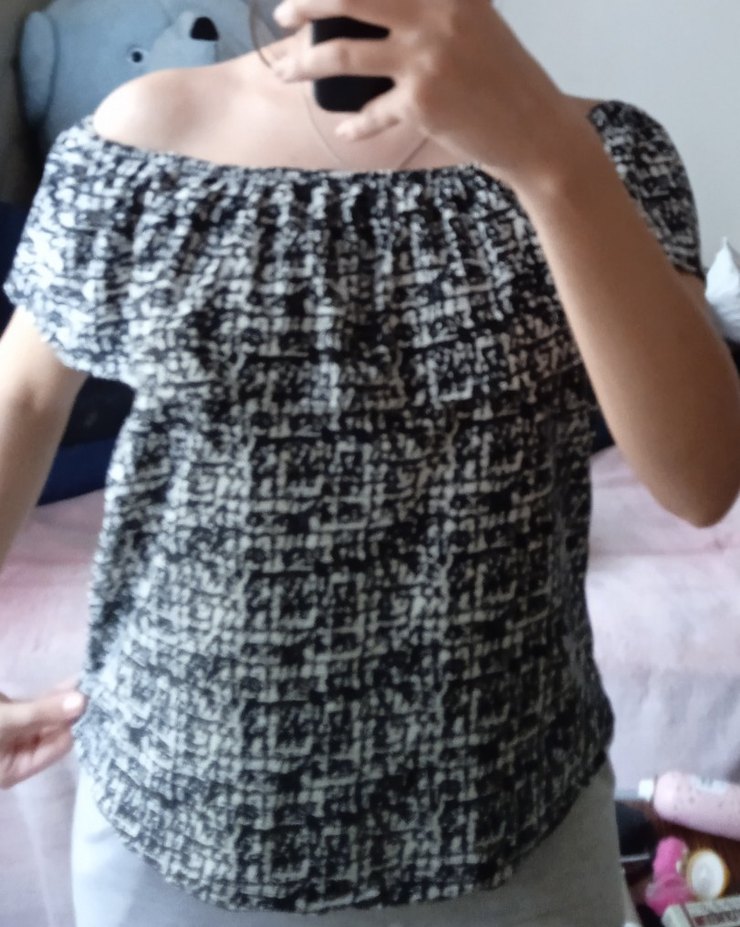Gri renkte, örgü detaylı, tek renk kadın bluz. Kayık yaka ve kısa kollu, rahat kesim. Günlük sokak stili için uygun, sentetik kumaştan üretilmiştir.