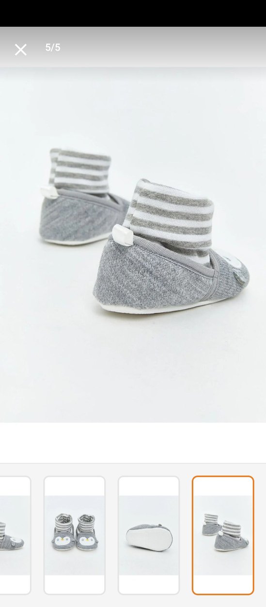 Gri örgü erkek bebek patikleri, zebra desenli ve kauçuk tabanlıdır, rahatlık ve modern stil sunar.