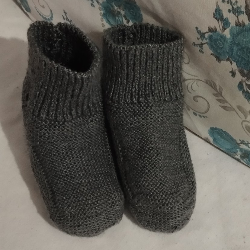 Gri renkte, yumuşak örgü kumaştan erkek bebek patikleri. Düz ve desensiz, sade bir tarza sahiptir.