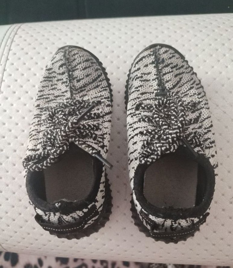 Gri renkli, örgü yapıda ve yılan desenli erkek çocuk spor ayakkabısı, kauçuk tabanlıdır.