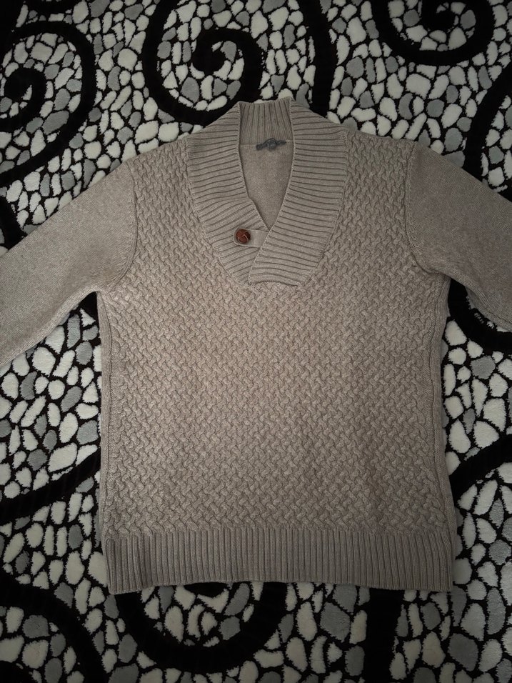 Gri renkli, yaka detaylı ve düğmeli uzun kollu erkek kazak. Örgü dokusu ve rahat kesimiyle günlük ve sokak stiline uygun.