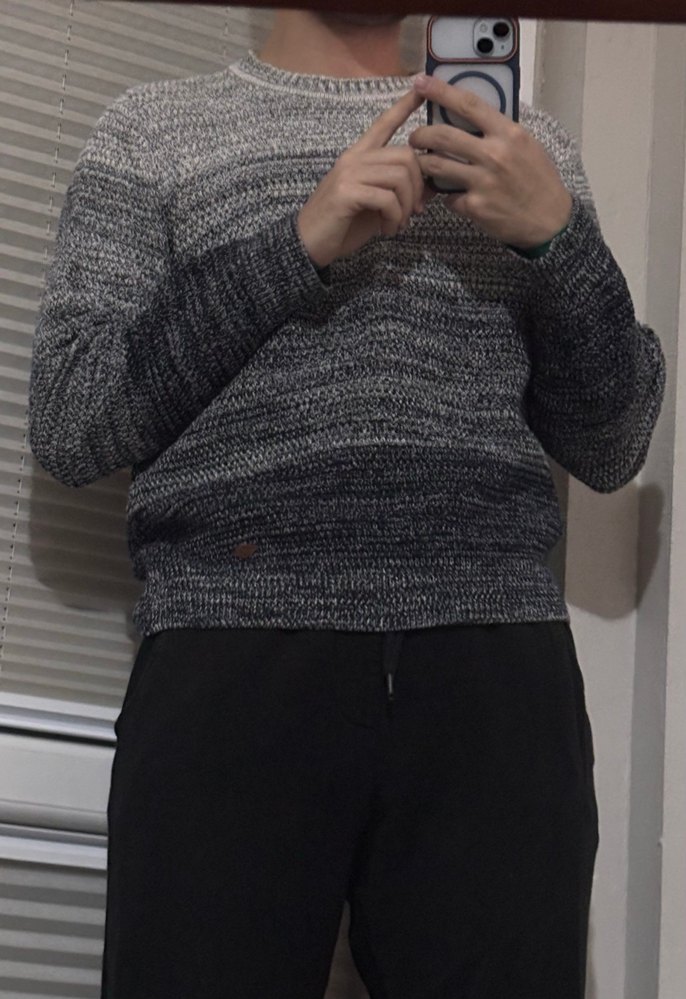 Gri örgü kumaştan, normal boyda, uzun kollu, bisiklet yaka, Günlük rahat kullanıma uygundur. Yıkamadan dolayı öndeki amblem hafif deforme oldu fotoğraftaki gibi iç etkisini kestiğim için markasını hatırlamıyorum ama LCW değil