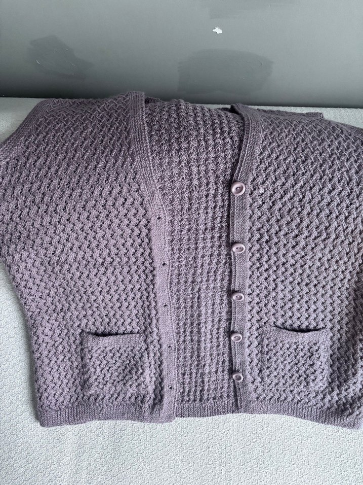 Gri renkli, örgü hamile hırka, bol kesim, uzun kollu ve kayık yaka detaylıdır. Normal midi uzunluğunda ve iki ön ceplidir, günlük kullanım için uygundur.