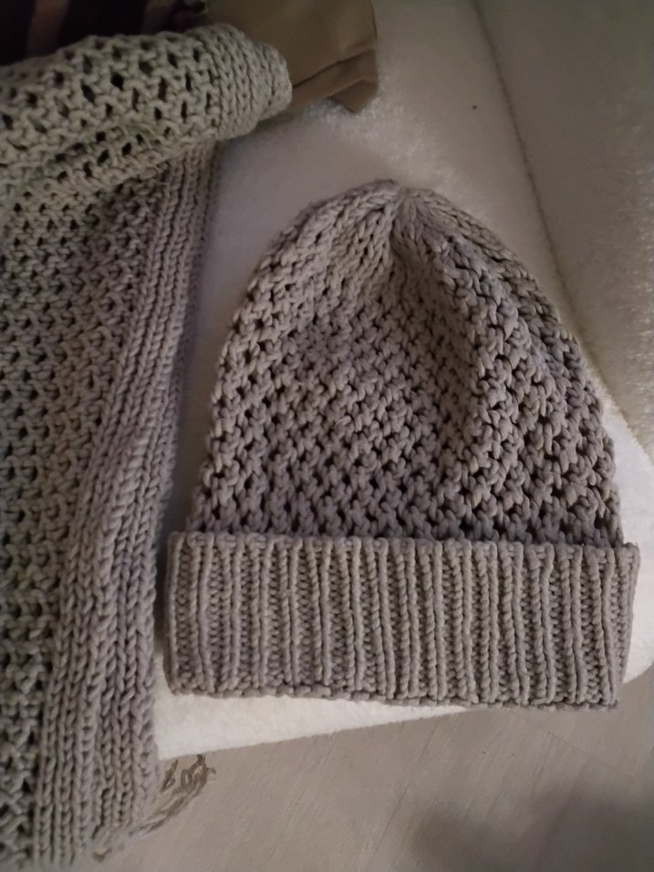 Yumuşak örgüden yapılmış, rahat ve bohem tarzda gri kadın bere.