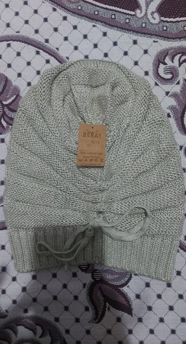 BERAY markalı gri örgü kadın bere, yumuşak dokusu ve bağcık detaylı tasarımıyla rahat ve bohem bir stil sunar.