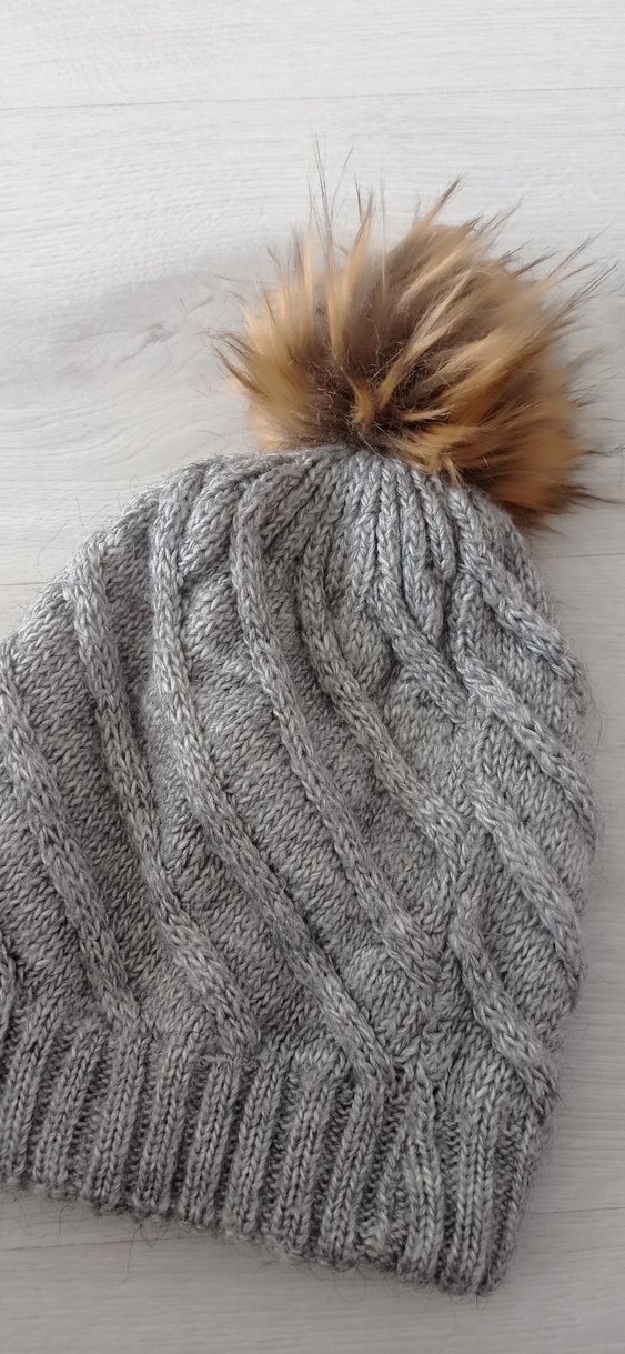 Yumuşak örgü kumaştan yapılmış, kürk ponpon detaylı gri bere, sıcak ve bohem tarz sunar. ❄️