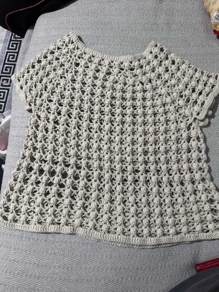Gri Örgü Kadın Bluz Kısa Kollu