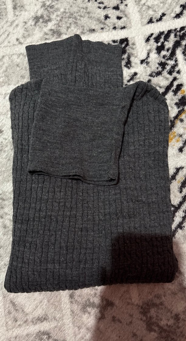 Yumuşak yünden üretilmiş, uzun kollu ve boğazlı, örgü dokulu gri renkli, uzun ve dar kesim kadın kazak. Trendy günlük kullanıma uygun.