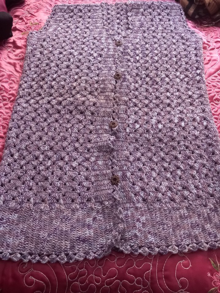 Uzun, kolsuz kadın yeleği, kayık yaka ve bol kesime sahiptir. Örgü gri kumaştan yapılmış, günlük kullanım için rahat ve bohem tarzda bir üründür.