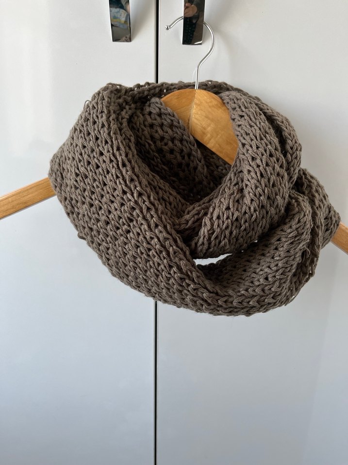 Kadınlar için örgü dokulu, gri tonlarda yumuşak ve rahat boyunluk şal. Bohem ve sade tarz sunar.