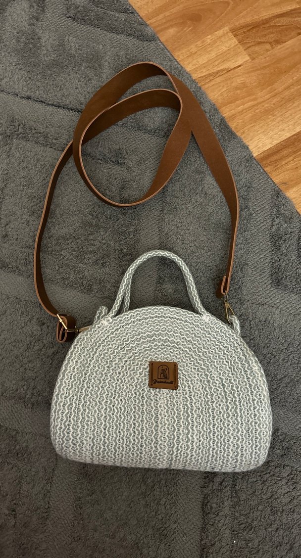 Hediye geldi hiç kullanılmadı Gri örgü kumaştan yapılmış kadın çantası, sade ve desen içermeyen tasarıma sahiptir. Rahat ve bohem tarzıyla günlük kullanıma uygundur. Hem kısa sap hem de uzun askı bulunur.